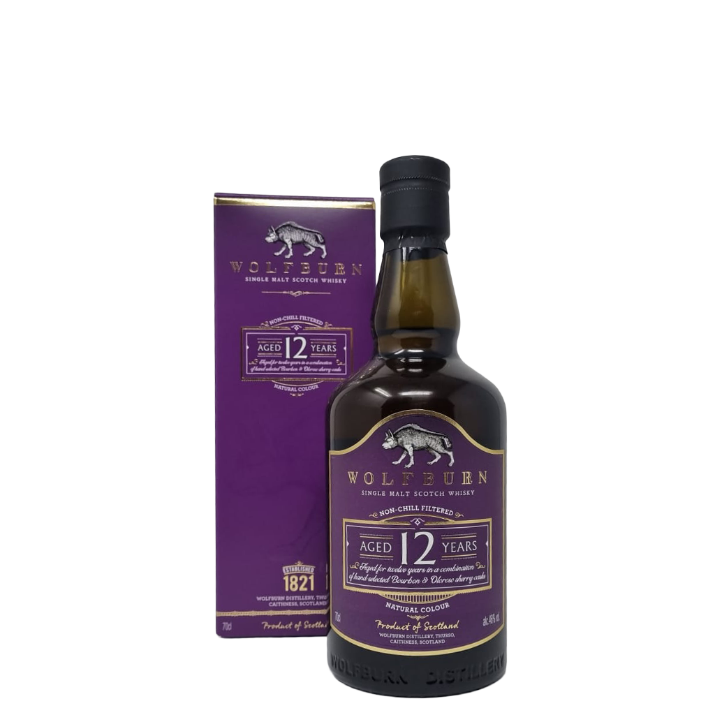 Der Wolfburn 12 Jahre ist die zur Zeit älteste dauerhaft verfügbare Abfüllung mit Altersangabe der nördlichsten Festlandsdestille Schottlands. Die Wolfburn Distillery wurde 2013 in Thurso neu gegründet – unweit der historischen Brennerei gleichen Namens aus dem 19. Jahrhundert. Heute steht Wolfburn für traditionelle Produktionsmethoden, langsame Destillation und bewusst lange Reifung in sorgfältig ausgewählten Fässern.